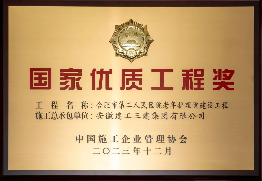 12月24日,2022-2023年度第二批國家優(yōu)質(zhì)工程獎獲獎名單揭曉。安徽建工三建集團承建的合肥市第二人民醫(yī)院老年護理院建設(shè)工程榮獲“國家優(yōu)質(zhì)工程獎”。至此,公司已累計獲得4項“國家優(yōu)質(zhì)工程獎”。